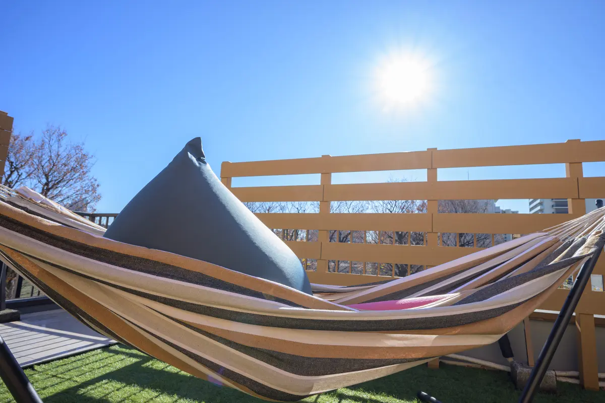 専用バルコニーから感じる、やわらかな空気と街の気配。室内は木の温もりとシンプルな設えで構成され、読書や対話に集中できるゆるやかな時間が流れます。屋外と屋内の境界がほどけていくような、感性に寄り添うスイートです。